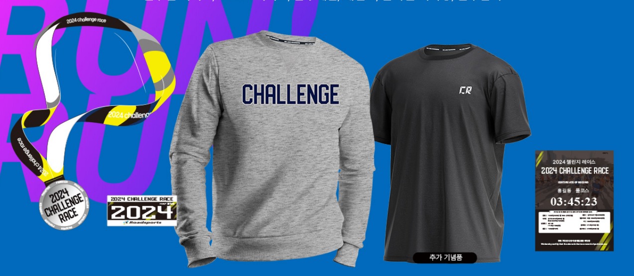 기념품: 맨투맨 티셔츠, 기능성 반팔 티셔츠, 기념 완주 메달, 배번호 온라인 기록증, 완주 간식