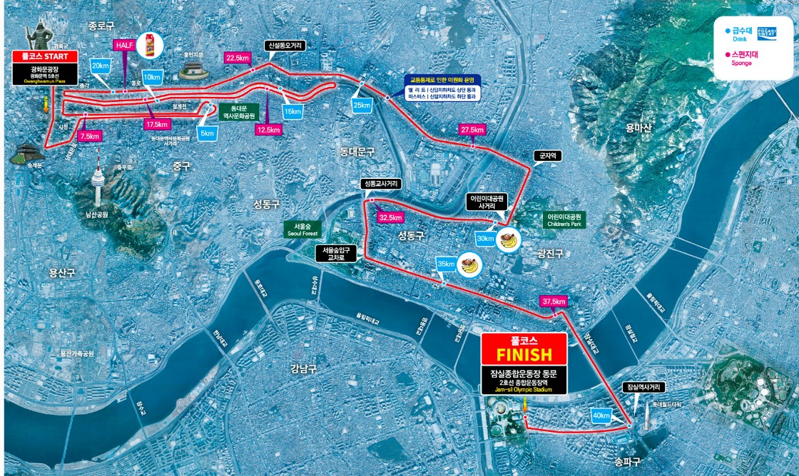 - 풀코스 대회장소: 광화문광장(출발) - 잠실종합운동장(도착)