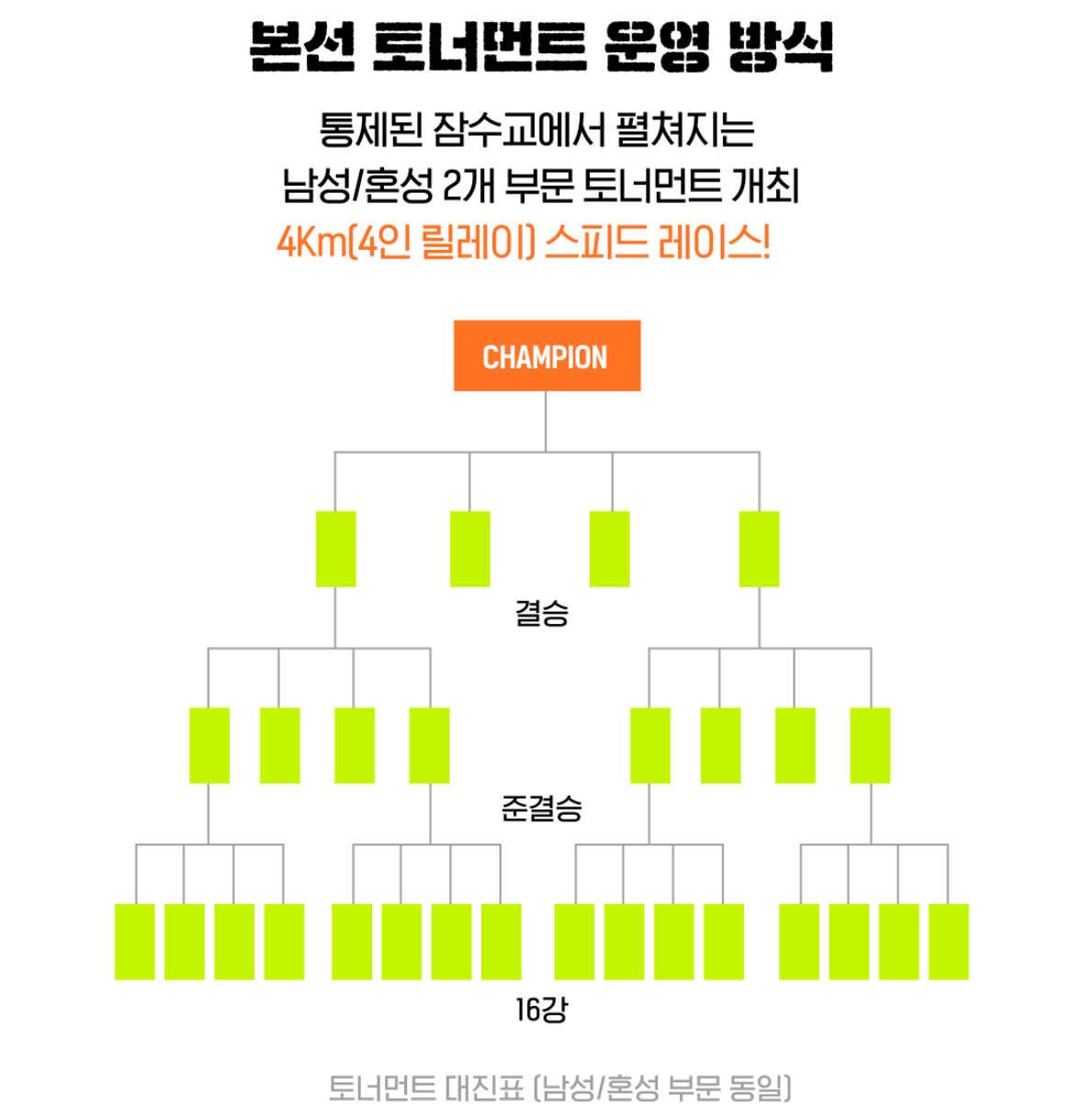 토너먼트 대진표는 남성/혼성부문 동일 진행