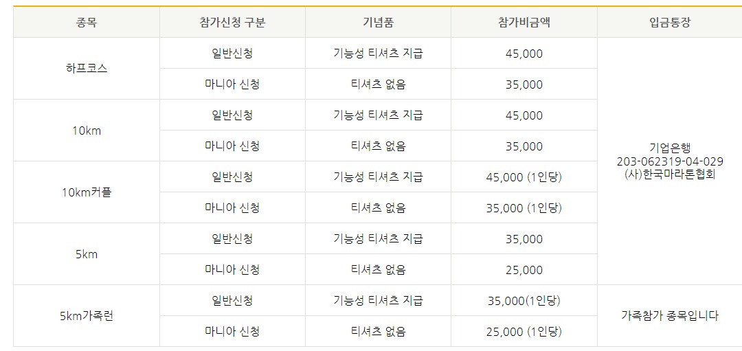 종목 : 5종목 (하프코스, 10km, 5km, 10km커플, 5km가족런)