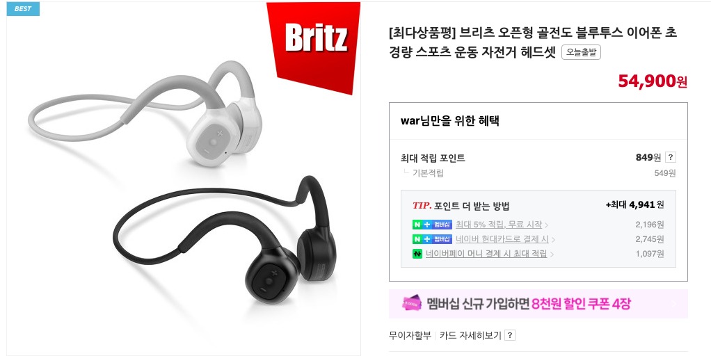 그 중에서도 브리츠는 딱 필요한 기능만 있을 뿐더러, 가격도 저렴하여 러닝용 이어폰으로 아주 적합합니다.